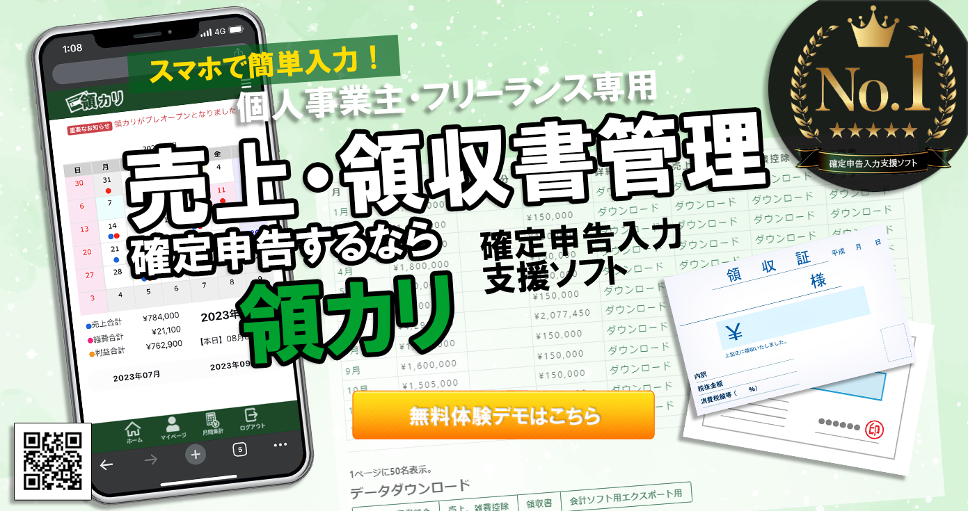 請求書、領収書管理申告支援ソフト-領カリ 詳細はこちら
